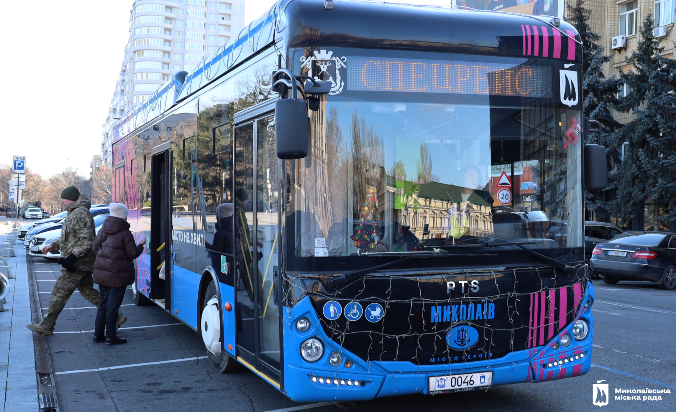 Саме з цією місією вже традиційно 25 грудня Миколаєвом курсував святковий тролейбус з колядниками, аби поділитися з містянами добром та теплом. І перша зупинка – площа Соборна.