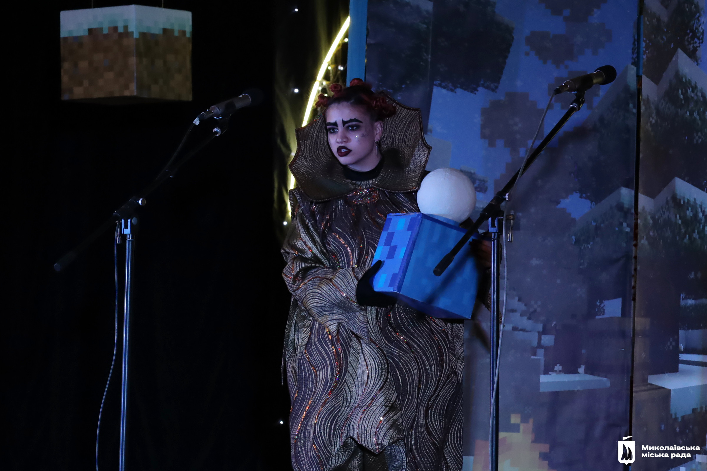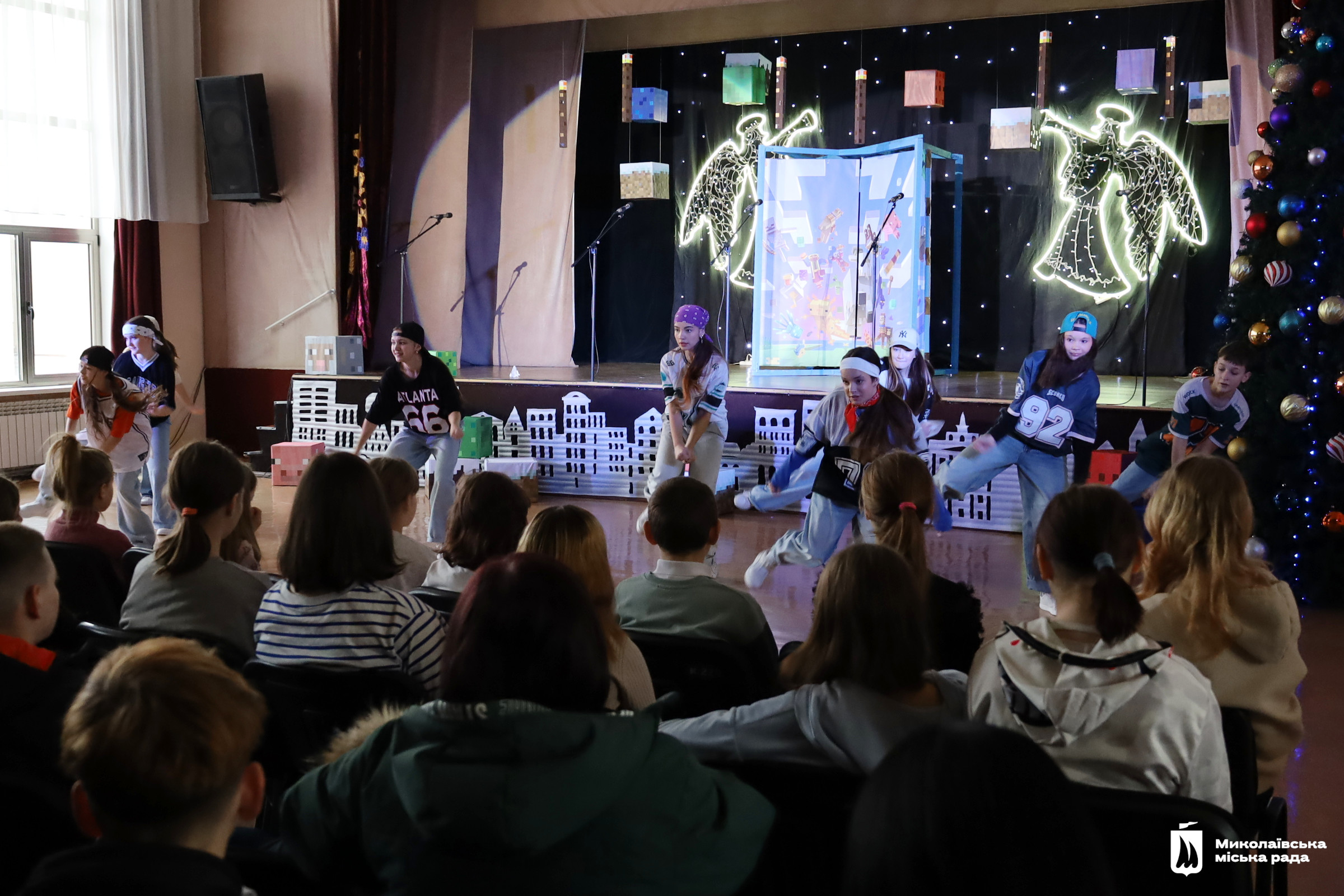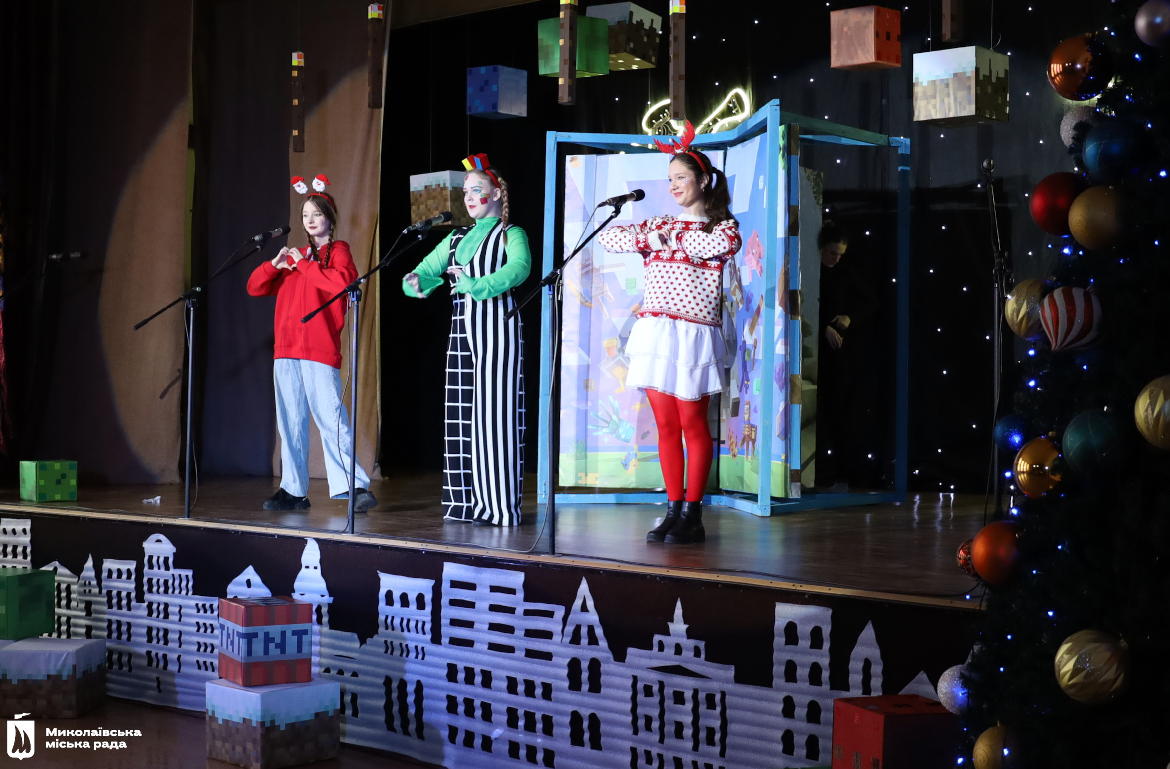 Сучасна казка за мотивами знайомої всім дітлахам комп’ютерної гри Minecraft була наповнена жартами, корисними порадами та добрими настановами. Вона вчила цінувати дружбу, допомагати один одному, вірити в себе та перемагати страхи. Маленькі глядачі були не лише спостерігачами, а ще й активними учасниками вистави. Вони допомагали головним героїням здолати всі перешкоди на своєму шляху та врятувати Різдво.